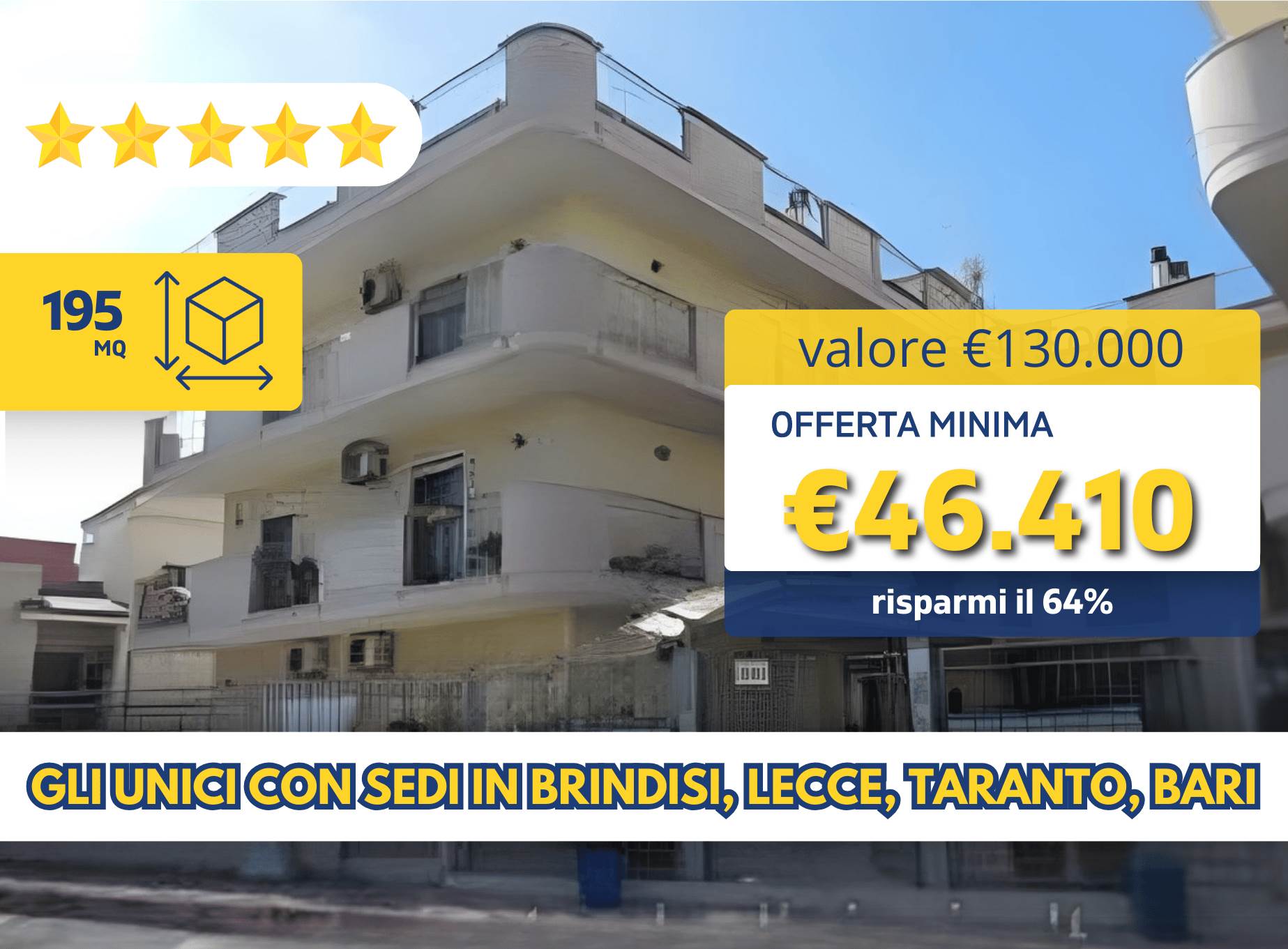 Valore di mercato: €130.000 Offerta minima: €46.410 Proc: 251/2019 LOTTO 1 Data asta: 24/02/2026