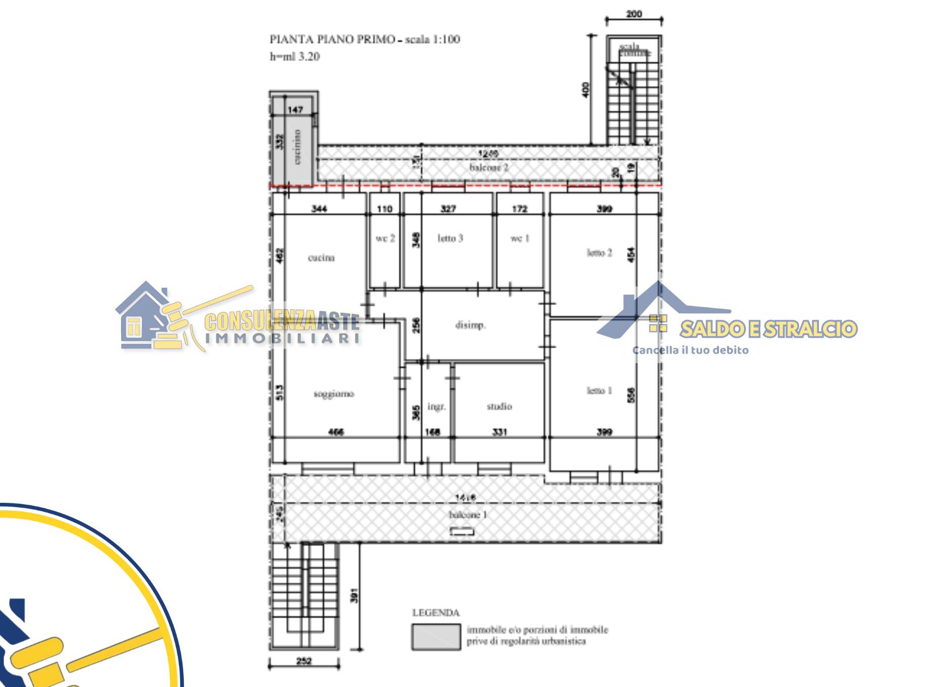 Il tutto sviluppa una superficie complessiva di 481 mq.