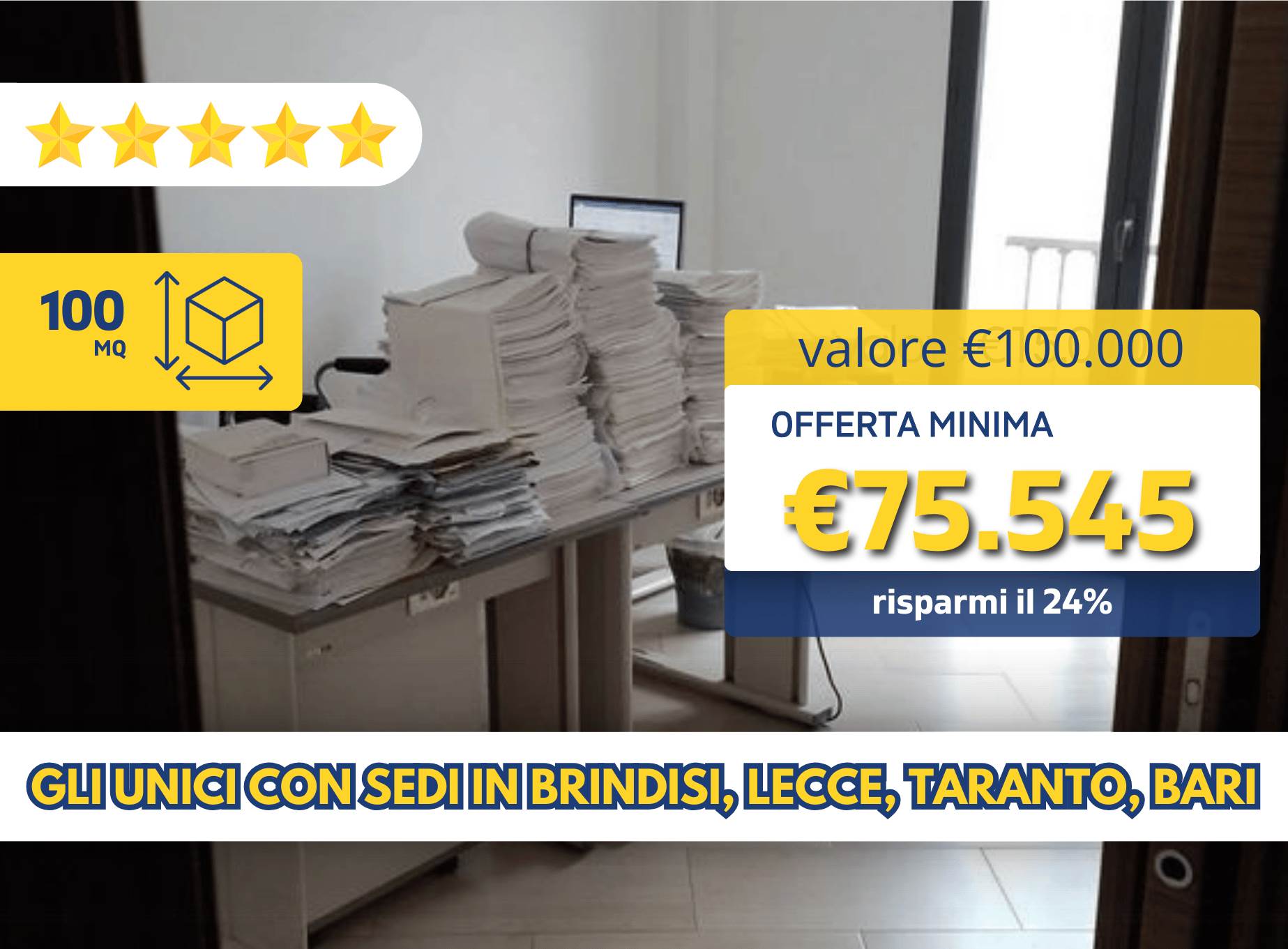 Valore di mercato: €100.000 Offerta minima: €75.545 Proc: 44/2023 LOTTO 6 Data asta: 16/03/2026