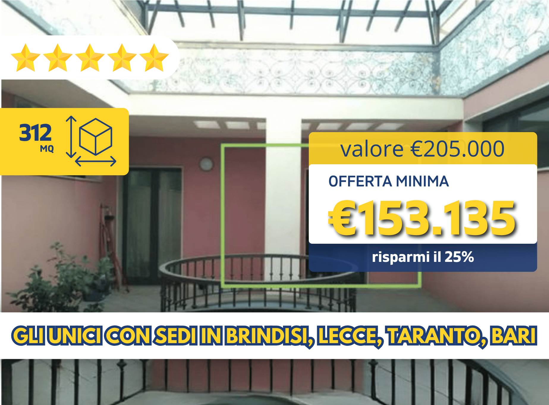 Valore di mercato: €205.000 Offerta minima: €153.135 Proc: 44/2023 LOTTO 8 Data asta: 16/03/2026