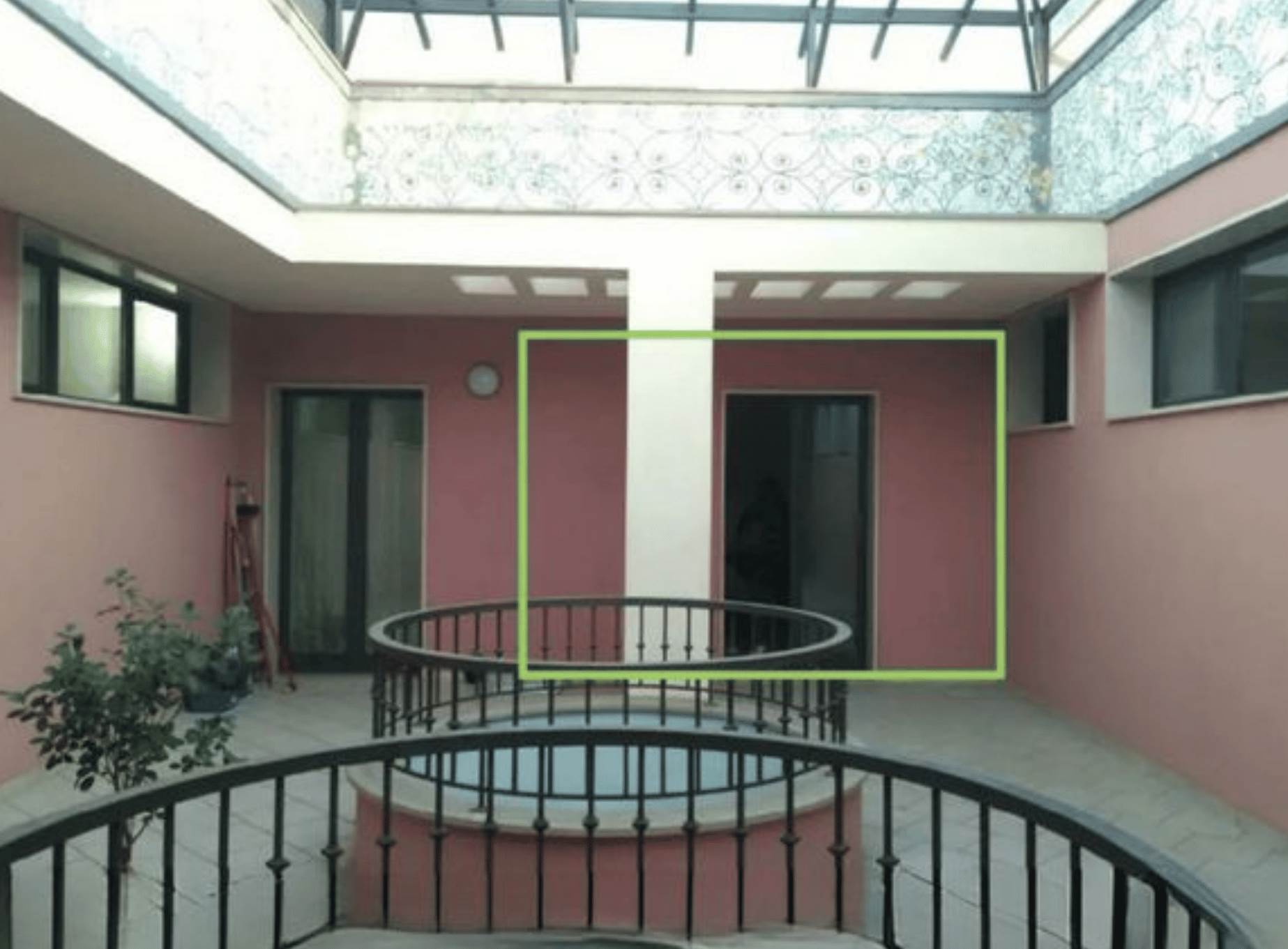 Si sviluppa al piano secondo. Originato dalla fusione di due immobili, si compone internamente di doppio ingresso (su scale diverse ed indipendenti), undici vani distribuiti su quattro disimpegni/corridoi, due bagni e un atrio interno all'unità immobiliare, per una superficie di 277 mq. Completano l'unità immobiliare due balconi di 35 mq. complessivi.