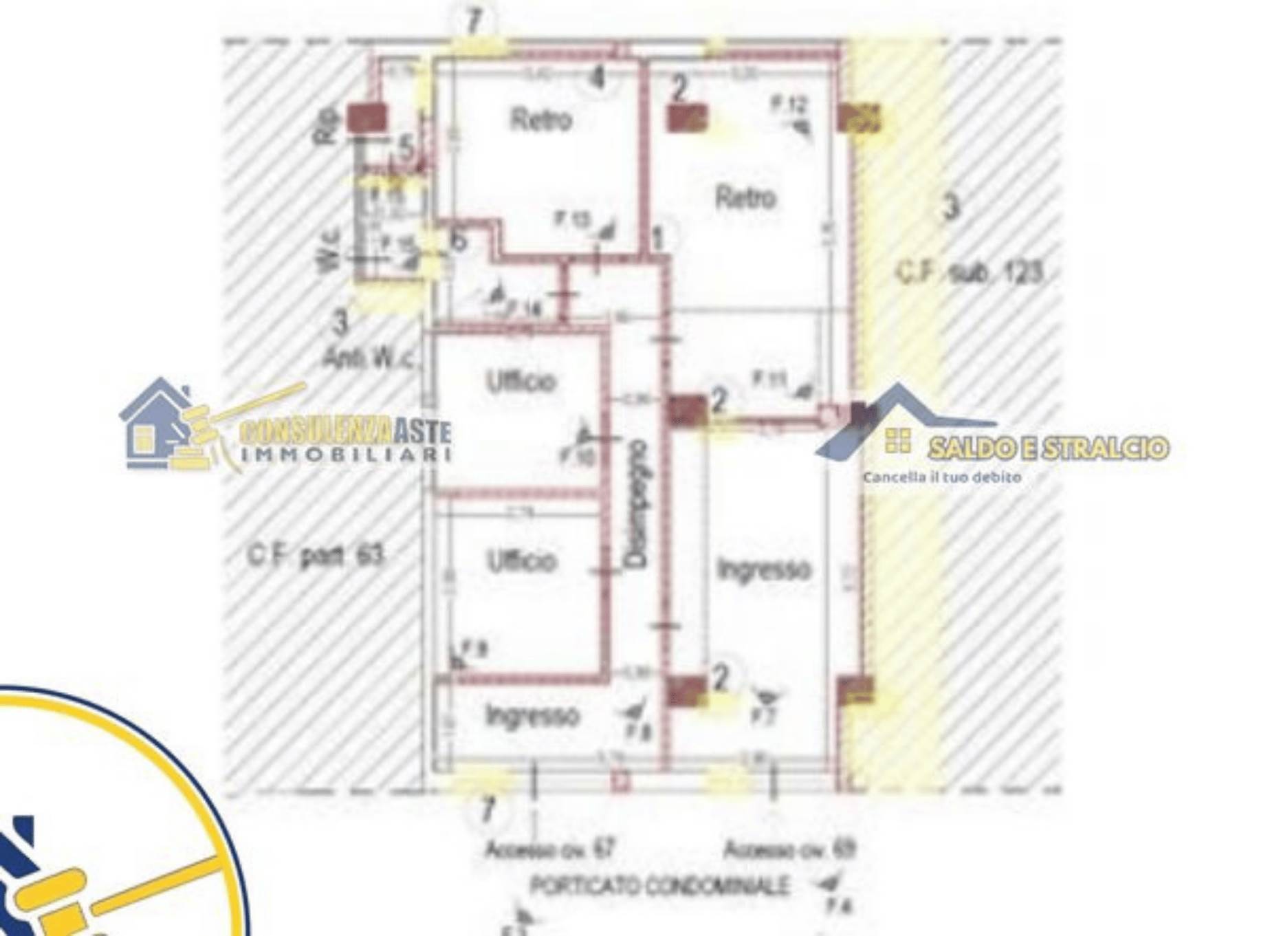 Si sviluppa al piano terra. L'immobile risulta così composto: due ingressi, due uffici, disimpegno, due locali sul retro, bagno e ripostiglio, per una superficie complessiva di 93 mq.